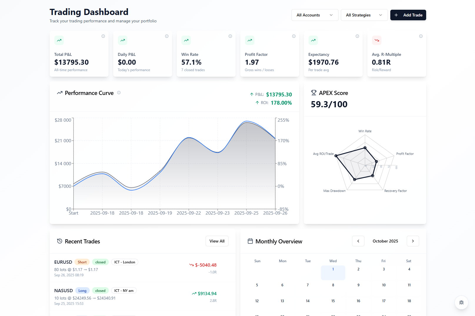 A set of extra functionalities designed to make your trading journal even more effective. Add and manage your own strategies, generate detailed reports for each strategy, and create multiple accounts with individual reports for every account. Seamless integrations, data export, and custom alerts ensure everything you need is in one place.