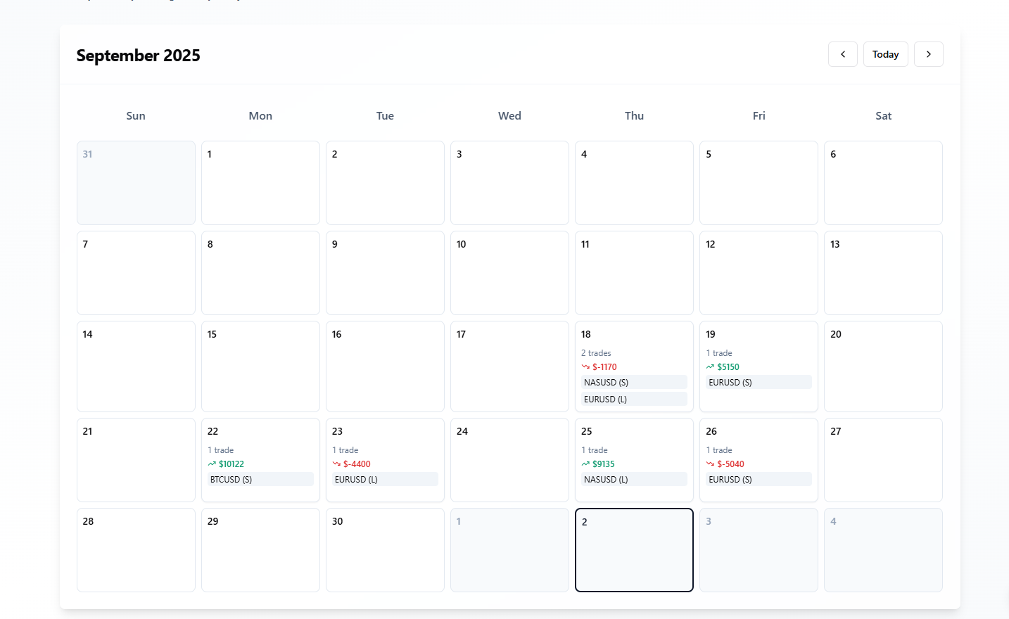 An integrated calendar and daily journal to plan trades, track market events, and record your own thoughts. This helps you better analyze how emotions and external factors impact your trading decisions.